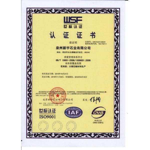 Quanzhou Xinyu Stone Co., Ltd. has always been driven by international standards. The company has obtained two core certifications, demonstrating its professional strength and sense of responsibility in the stone industry: